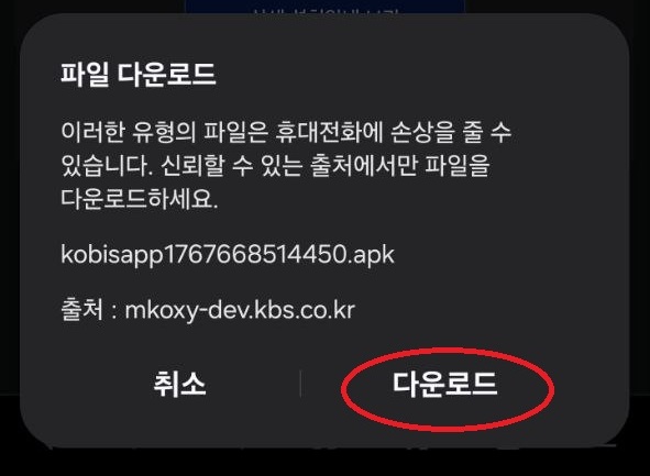 다운로드 안내 팝업에서 "다운로드"를 선택해 주세요.